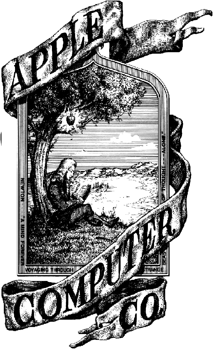 Sous le dessin, on pouvait lire en anglais «un esprit voyageant sans fin sur les mers étranges de la pensée, seule », un extrait du poème Le Prélude de William WordsWorth. Insatisfait, Steve Jobs a demandé à changer le logo l'année même de sa réalisation, le jugeant démodé et trop complexe.